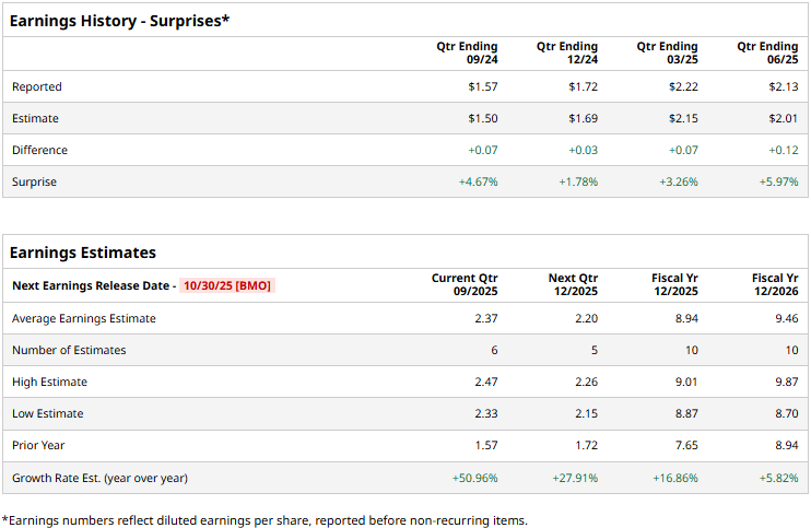 The healthcare giant is gearing up to unveil its third-quarter results before the market opens on Thursday, Oct. 30. Ahead of the event, analysts expect MRK to deliver a profit of $2.37 per share, up 51% from $1.57 per share reported in the year-ago quarter. Further, the company has a solid earnings surprise history and has surpassed the Street’s bottom-line estimates in each of the past four quarters.